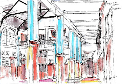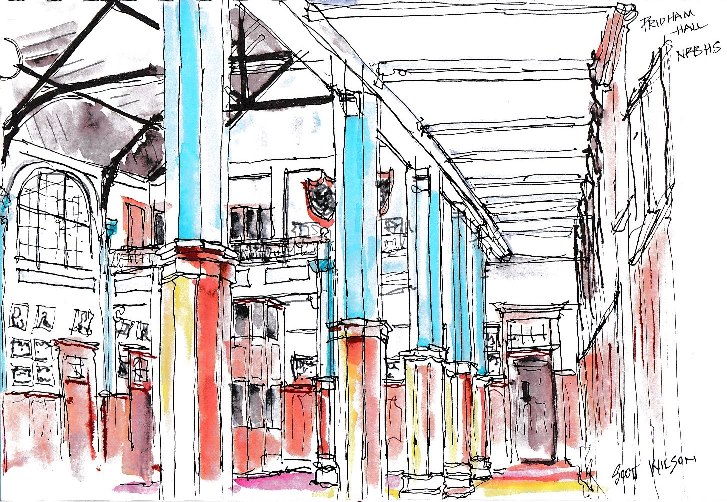 This weekend we got kind permission to draw from the cricket field looking back. A famous painting has been done from this same view but miraculously including the cricket pavilion which is actually well behind me.