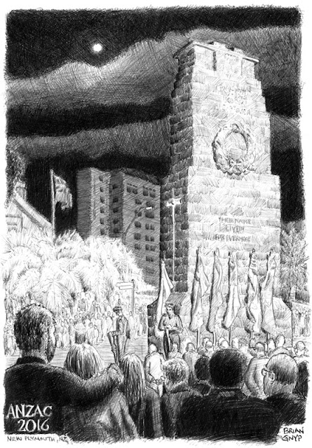 I went to the ANZAC dawn service this year again. It was another large turnout of people paying respects to those lost during different wars. I liked the darkness of the pre-dawn night together with the bright spotlights. It's hard to draw if your page is in a shadow so I found it more difficult than last year. (2015's is below)