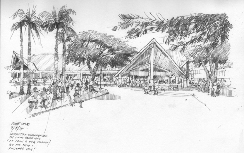 2. Love those trees. Welcome aboard Neil. I know that crowd - when I first started sketching regularly it was in Samoa, and had the same experience, including the crowd controller - they must have one appointed on every Pacific island