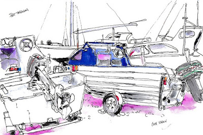 Peering through the fence at Port Taranaki at all the boats parked up in various states of repair.