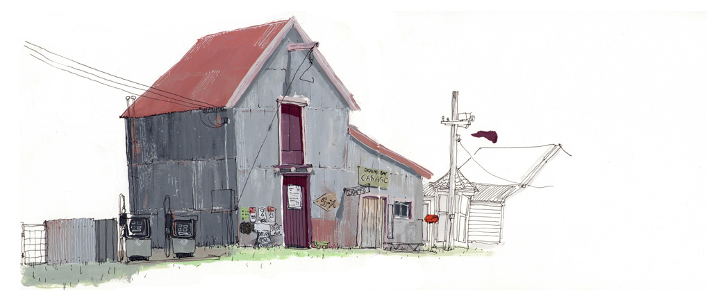 On my way to the Okains Bay beach, one of the bay of the Banks Peninsula, I came across this gas station, like much of the thing that I enjoy sketching it was old, rusty and it had a few layers of paint. I left my girls on the estuary for a swim and came back to draw it, I was excited with this surprise after such a long drive it felt like a reward, so I knew I could easily spend a couple of hours there sketching, and that is was happened.